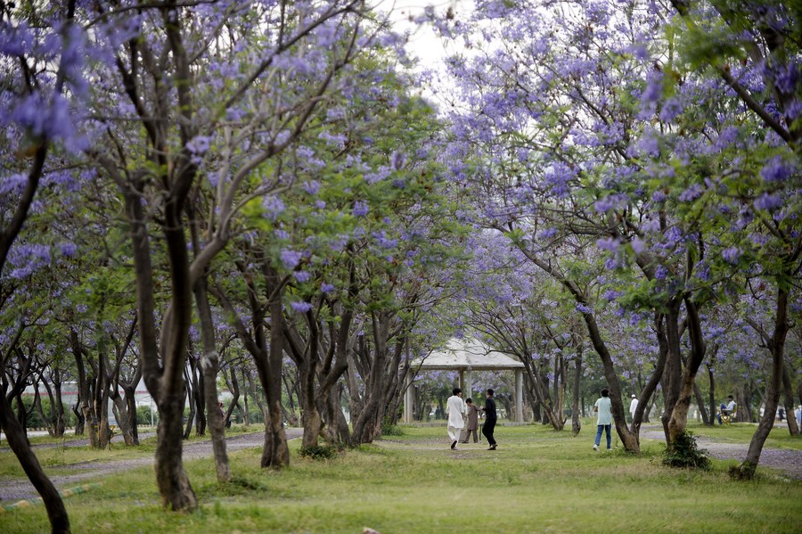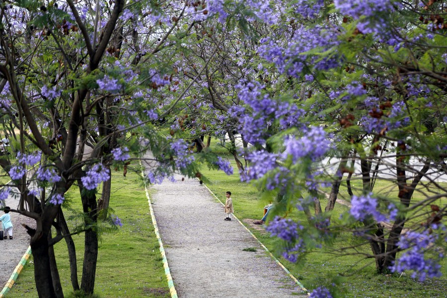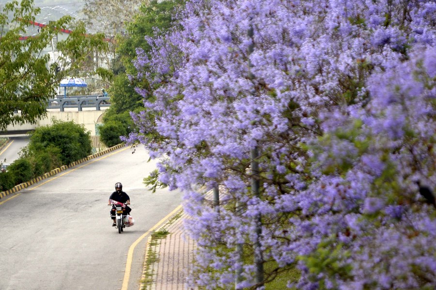 ISLAMABAD, May 3 (Xinhua) -- Streets in Pakistan's capital Islamabad are blanketed in beautiful violet haze as the city's jacarandas are in full bloom.