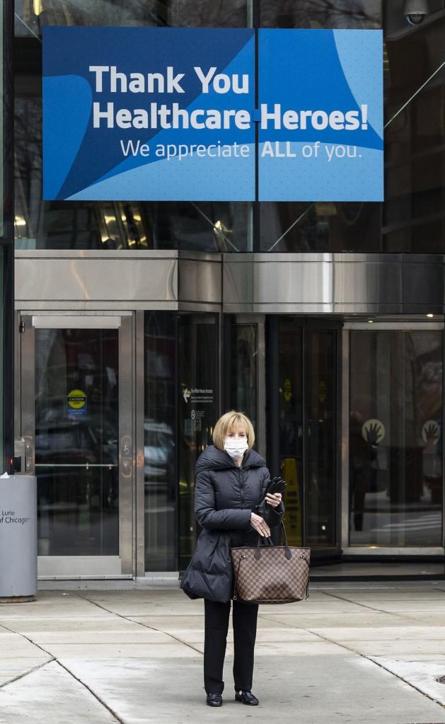 A woman wearing a face mask is seen outside Ann and Robert H. Lurie Children's Hospital of Chicago in Chicago, the United States, on Dec. 12, 2022. (Photo by Joel Lerner/Xinhua)