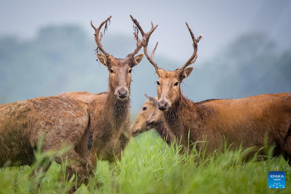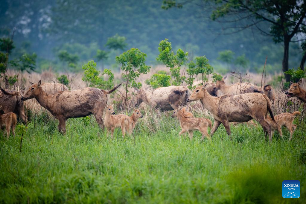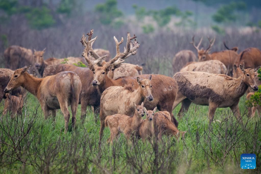 The number of milu deer in the reserve has grown from 64 in the 1990s to around 2,500 over the past three decades. (Xinhua/Wu Zhizun)