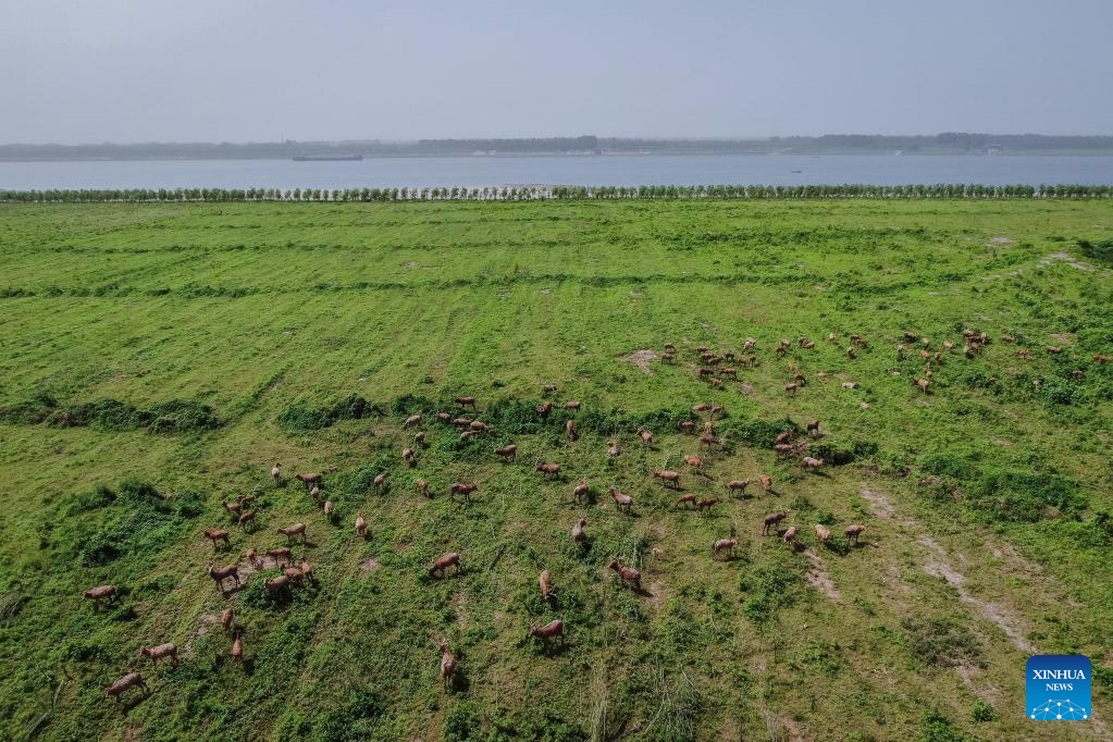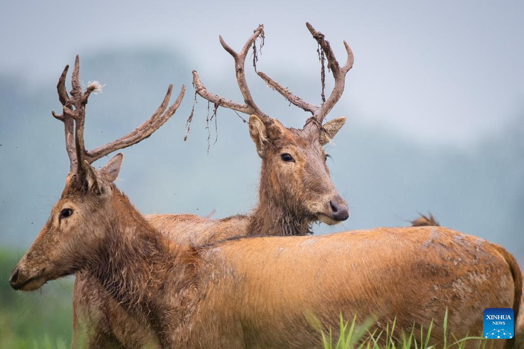 Close to the Yangtze River, the area has a complete wetland ecosystem and vast pastureland, which is an ideal habitat for milu deer.