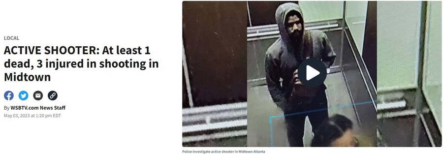 The screenshot taken from the website of WSB-TV shows the title and picture of its latest report about the shooting accident on May 3, 2023, in Atlanta, the capital and most populous city of the southeastern U.S. state of Georgia. (Xinhua)