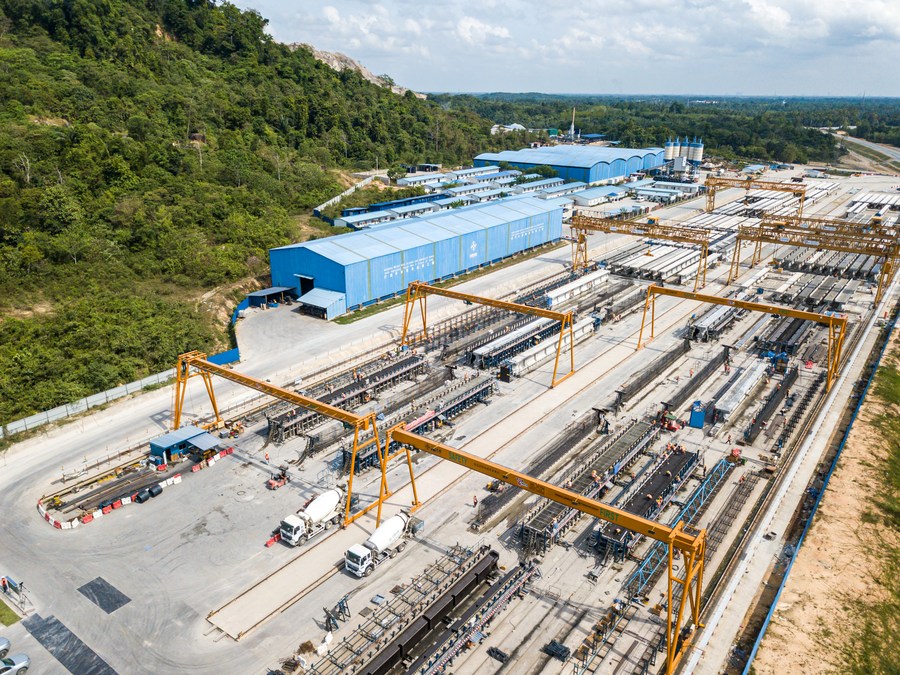 This aerial photo taken on April 26, 2023 shows a beam yard of the East Coast Rail Link (ECRL), a major infrastructure project under the Belt and Road Initiative (BRI) in Kelantan, Malaysia. (Xinhua/Zhu Wei)