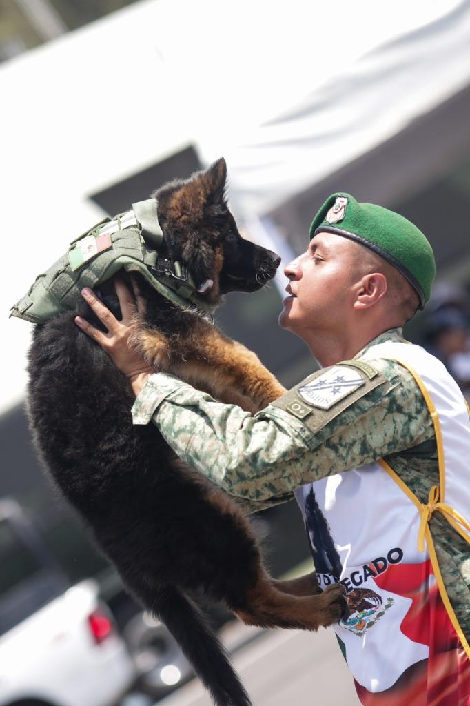 German shepherd puppy Arkadas is cuddled by a soldier at a military base in Naucalpan, Mexico, May 3, 2023. Mexico on Wednesday welcomed Arkadas, a new search puppy given as a gift by Türkiye out of gratitude to Proteo, a Mexican search dog which died while carrying out duties when a massive earthquake struck Türkiye in February. (Photo by Francisco Canedo/Xinhua)