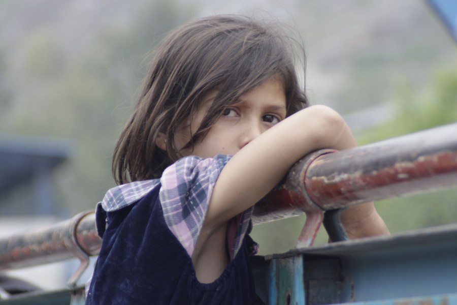 An Afghan girl is pictured at the border crossing point of Torkham between Pakistan and Afghanistan in Nangarhar province, Afghanistan on May 4, 2023.