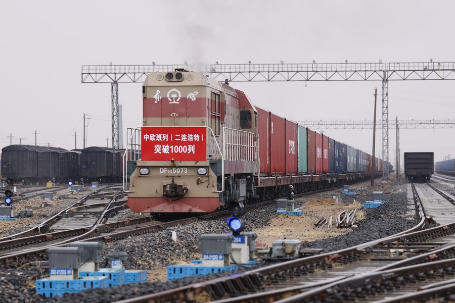 Erenhot Port in north China's Inner Mongolia Autonomous Region has logged over 1,000 China-Europe freight trains so far this year, the local railway authorities said on Thursday. (Photo by Xia Liang/Xinhua)