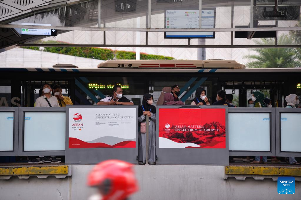 People wait to take buses in Jakarta, Indonesia, May 5, 2023. Preparations are now ready to secure and facilitate the 42nd summit of the Association of Southeast Asian Nations (ASEAN), which will be convened in the Indonesian resort spot of Labuan Bajo next week. Indonesia, the largest economy in the region, is chairing ASEAN this year with the theme of "ASEAN Matters: Epicentrum of Growth." (Xinhua/Xu Qin)