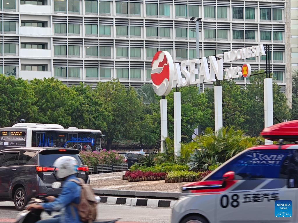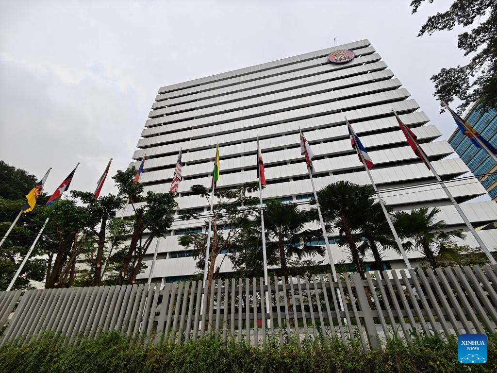 This photo taken on May 5, 2023 shows a view of the ASEAN Secretariat in Jakarta, Indonesia. Preparations are now ready to secure and facilitate the 42nd summit of the Association of Southeast Asian Nations (ASEAN), which will be convened in the Indonesian resort spot of Labuan Bajo next week. Indonesia, the largest economy in the region, is chairing ASEAN this year with the theme of "ASEAN Matters: Epicentrum of Growth." (Xinhua/Xu Qin)