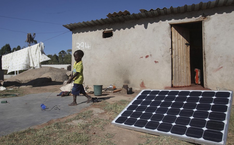 A Child plays at his impoverished home in Epworth, 23 km southeast of Harare, Zimbabwe, Oct. 17, 2013. (Xinhua)