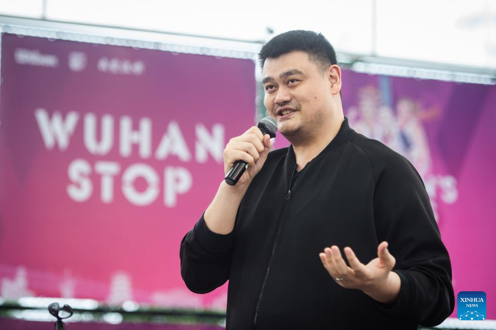 Chinese Basketball Association president Yao Ming addresses the opening ceremony of 2023 FIBA 3x3 Women's Series Wuhan Stop in Wuhan, central China's Hubei Province on May 6, 2023. (Xinhua/Wu Zhizun)