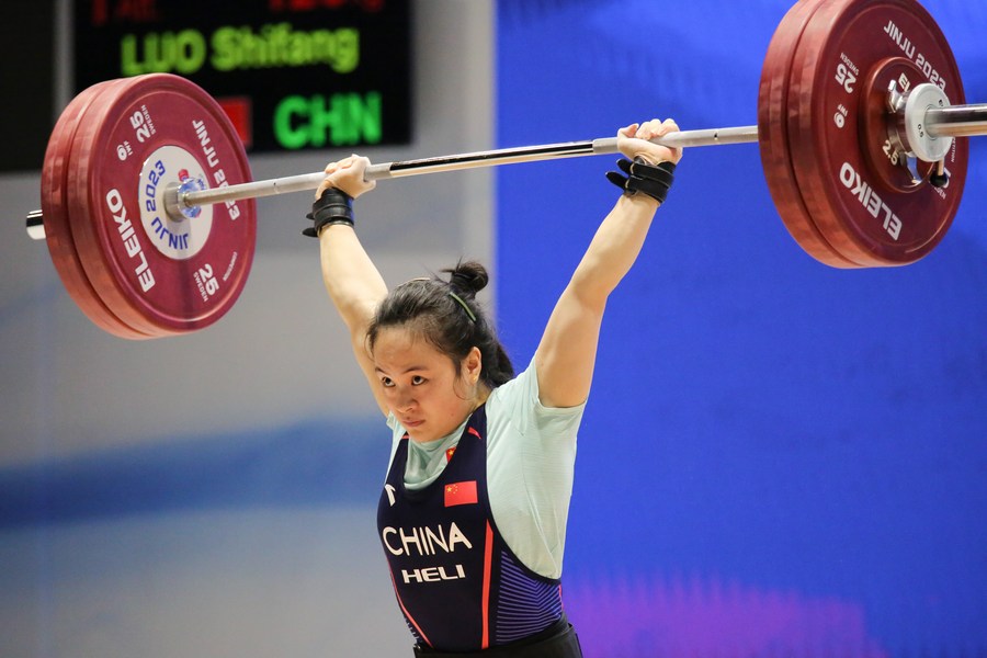 Luo lifted 105kg in the snatch to pocket gold, beating her compatriot Pei Xinyi to second with 103kg who failed with 106kg on her final attempt.