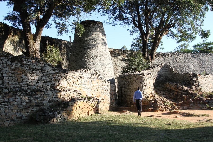 A tourist visits the Great Zimbabwe National Monument in Masvingo Province, Zimbabwe, May 5, 2023. (Xinhua/Zhang Baoping)