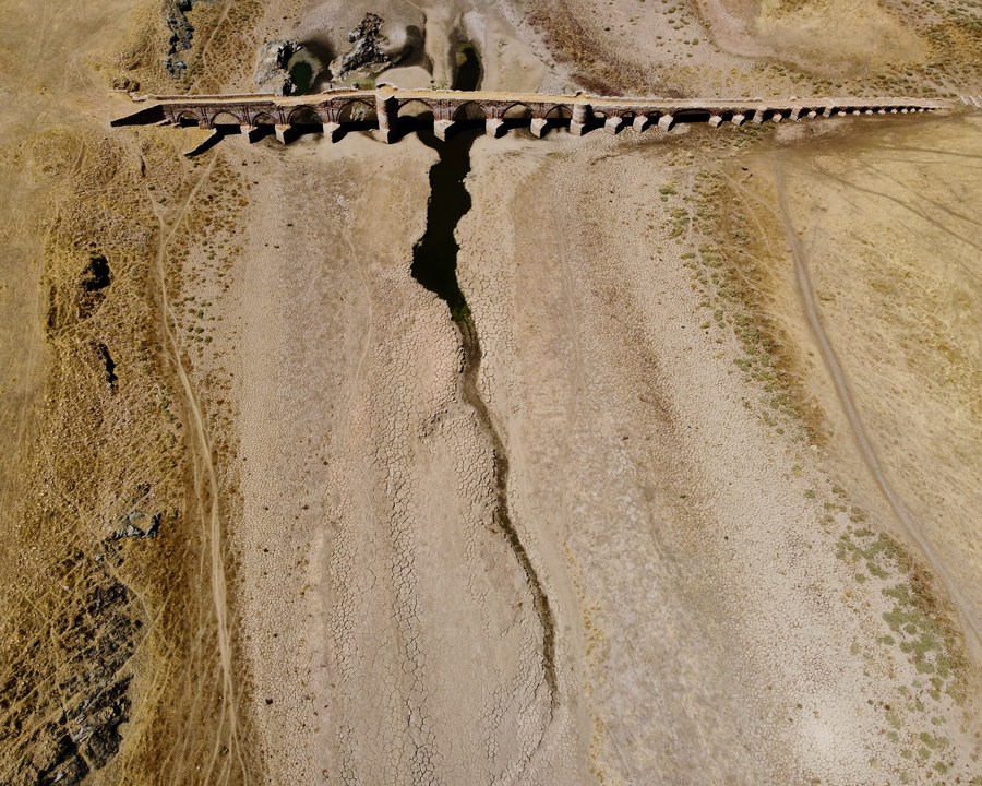 Photo taken on Aug. 15, 2022 shows a view of Cijara reservoir in Extremadura, Spain. (Xinhua/Meng Dingbo)