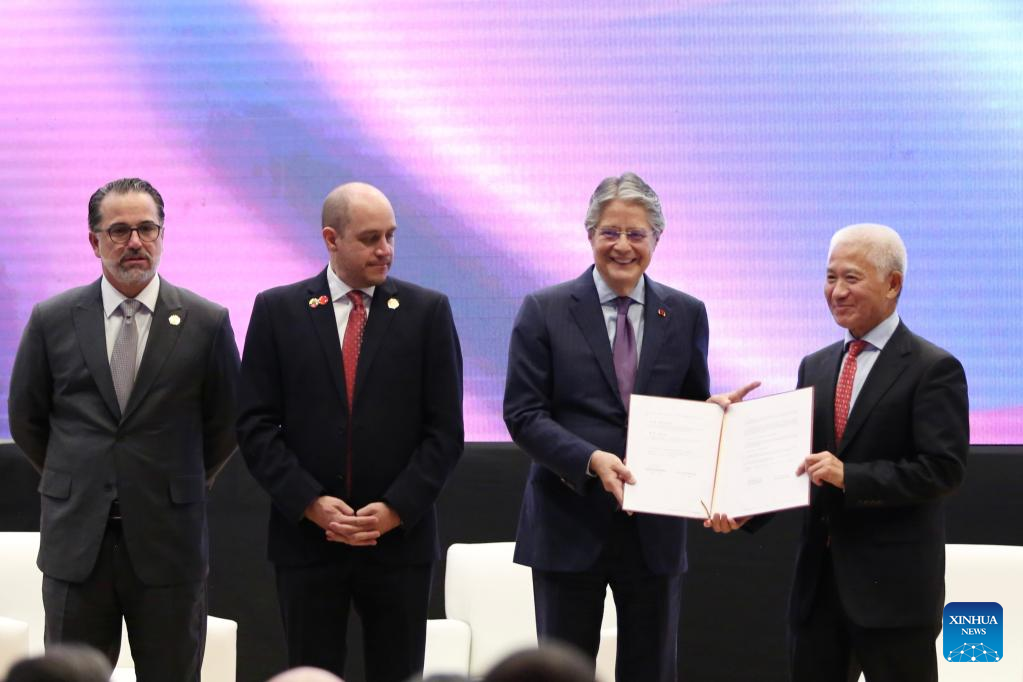 The pact was signed by China's Commerce Minister Wang Wentao and Ecuador's Minister for Production, Foreign Trade, Investment and Fisheries Julio Prado via video after a year of negotiation, said the ministry.