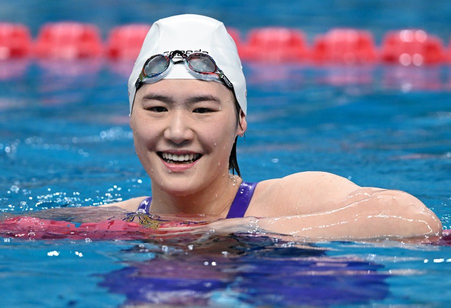 Ye Shiwen wins the women's 200m breaststroke at the Chinese national spring swimming championships in Qingdao on March 23, 2023. (Xinhua/Xia Yifang)