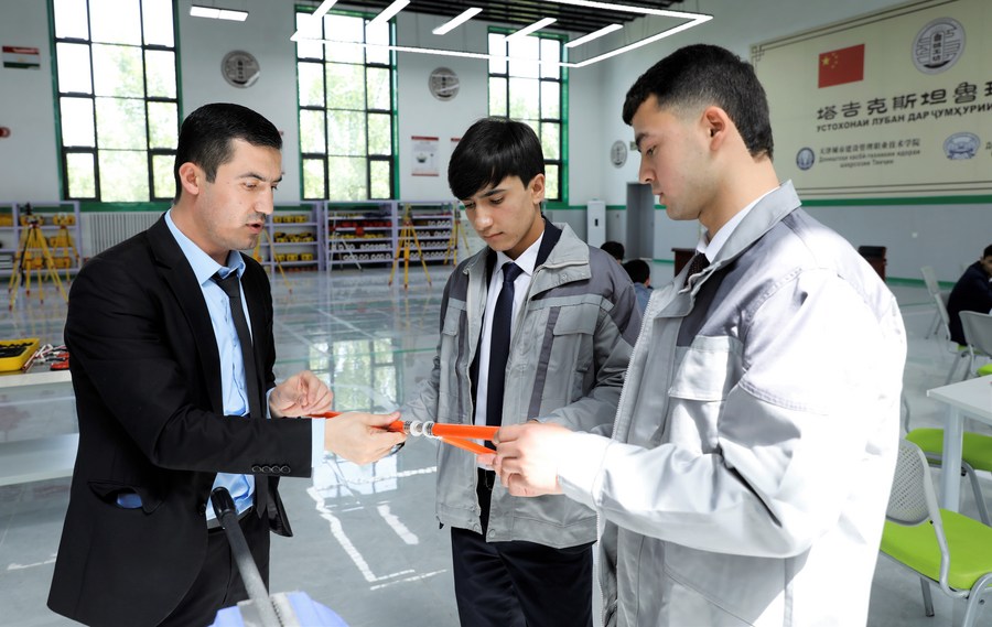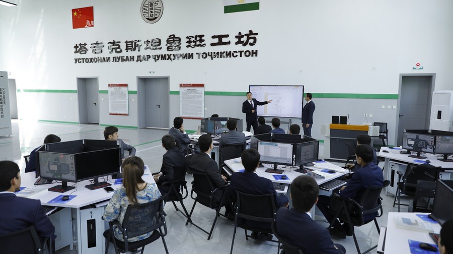 Students learn skills at the Luban Workshop in Dushanbe, Tajikistan, April 12, 2023. (Photo by Kalizhan Ospanov/Xinhua)