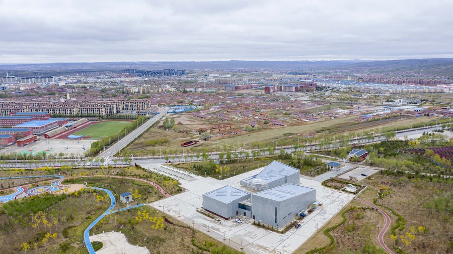 This aerial photo taken on May 9, 2023 shows the scenery of Haiyuan County, Zhongwei City, northwest China's Ningxia Hui Autonomous Region. (Xinhua/Yang Zhisen)