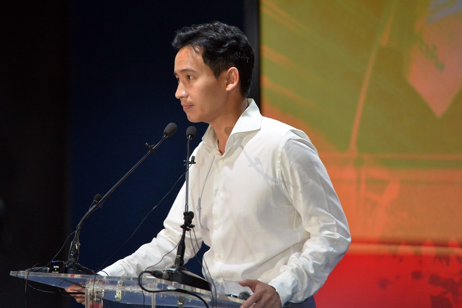 Pita Limjaroenrat, the prime minister candidate from the Move Forward Party of Thailand, attends a press conference at the Move Forward Party headquarters, in Bangkok, Thailand, May 14, 2023.(Xinhua/Rachen Sageamsak)