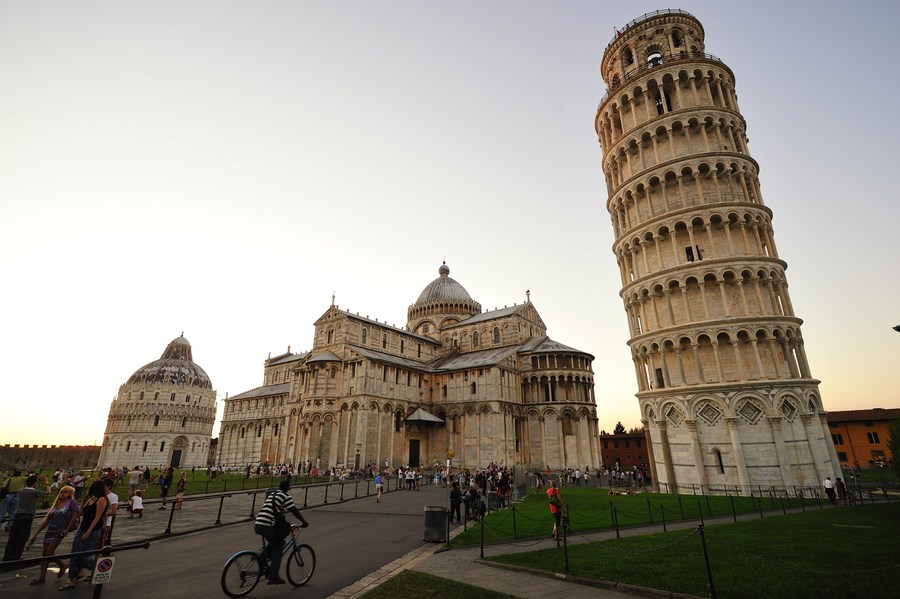 Photo taken on Aug. 17, 2011 shows the baptistry, the cathedral and the campanile (the the "Leaning Tower") (from L to R) at the Duomo Square (Piazza del Duomo) in Pisa, central Italy. (Xinhua/Wang Qingqin)