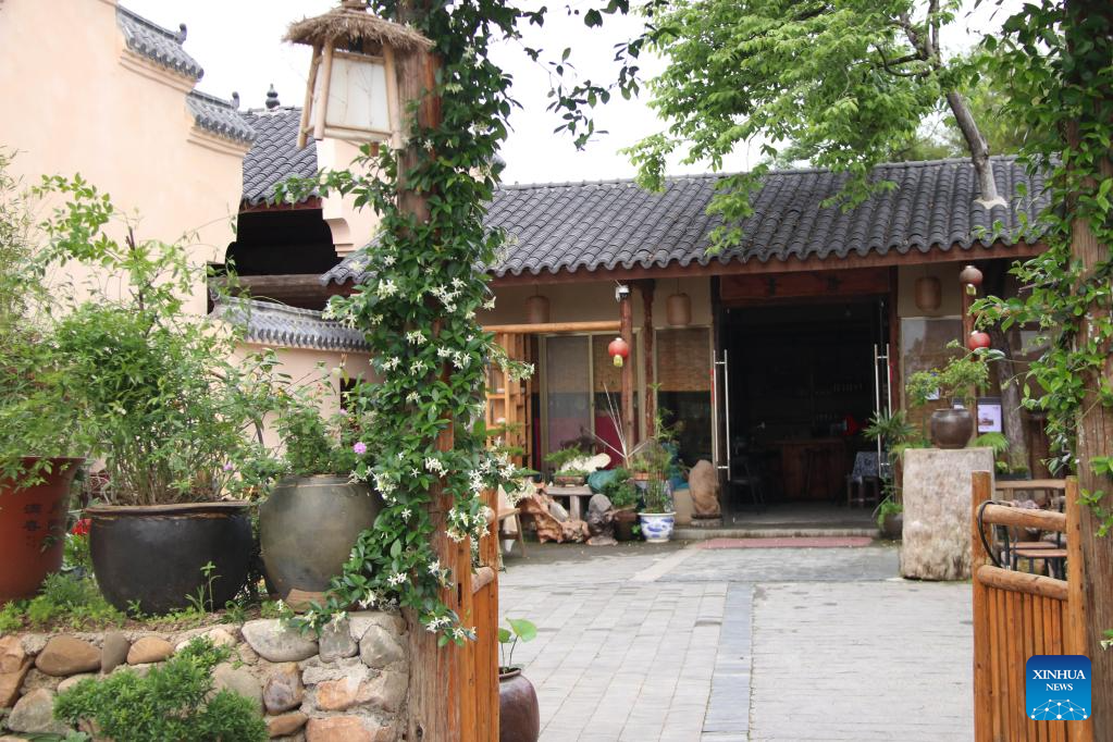 NANCHANG, May 17 (Xinhua) -- Hearing the ballads floating from "Shi Yin," a tea bar in Huanghuawan, east China's Jiangxi Province, visitors and residents could not help but walk into it.