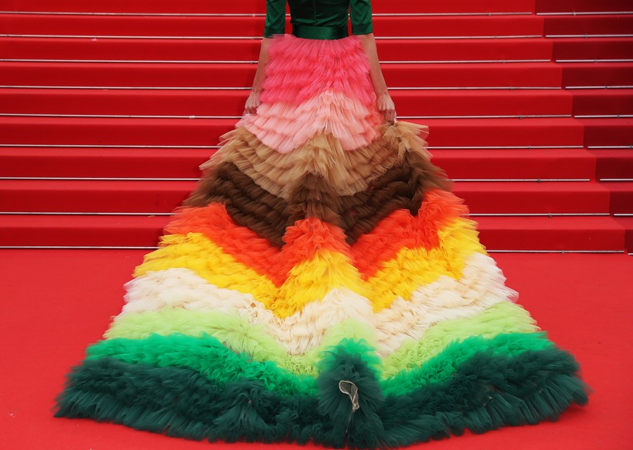 A guest arrives for the opening ceremony of the 76th edition of the Cannes Film Festival in Cannes, southern France, May 16, 2023. The 76th edition of the Cannes Film Festival kicked off on Tuesday evening, with 21 films selected to compete for the Palme d'Or top prize. (Xinhua/Gao Jing)