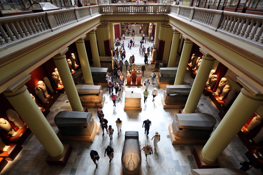 People visit the Egyptian Museum in Cairo, Egypt, May 16, 2023. The International Museum Day falls on May 18 annually, with its theme this year being "Museums, Sustainability and Wellbeing." (Xinhua/Sui Xiankai)