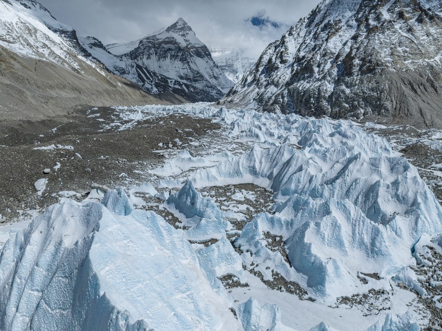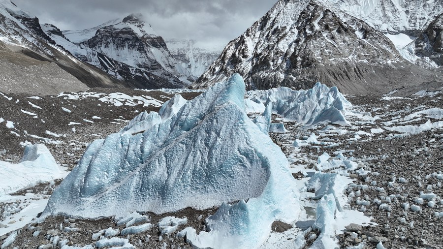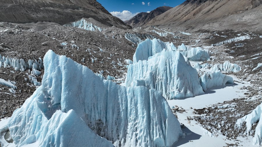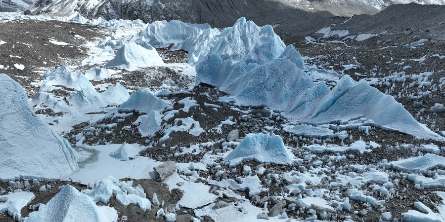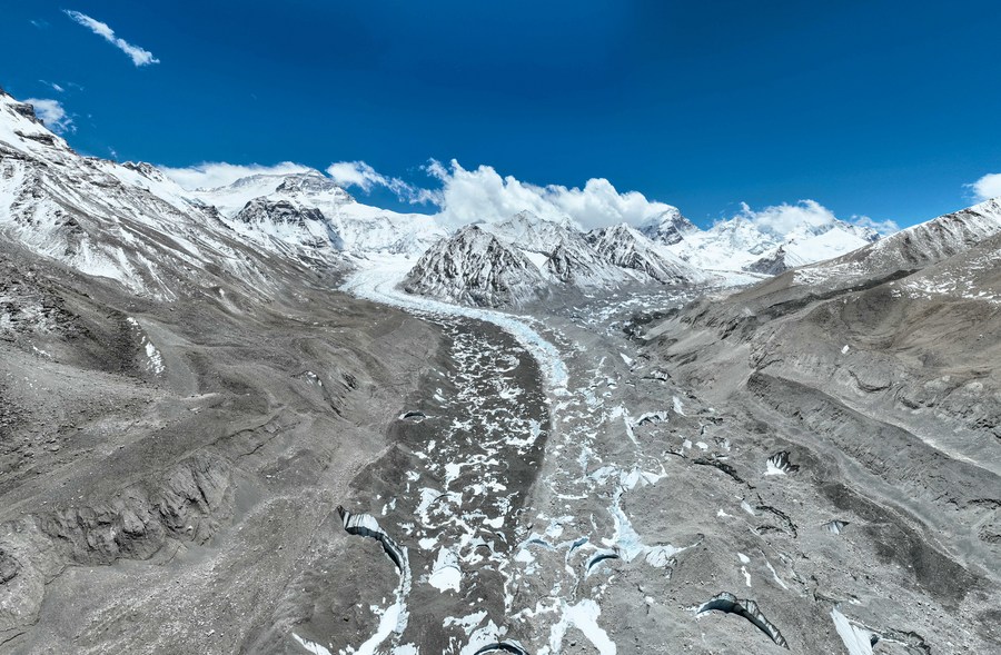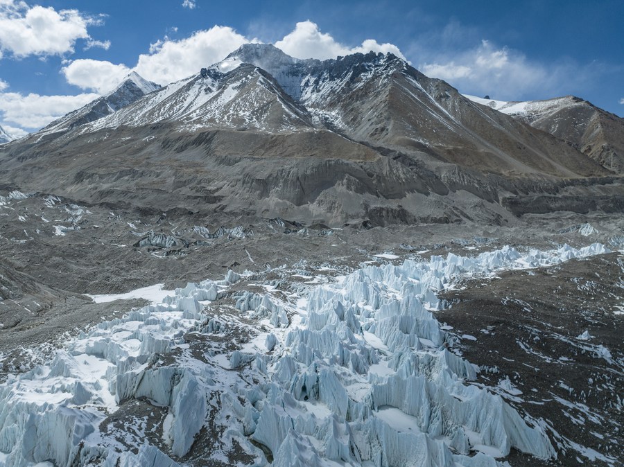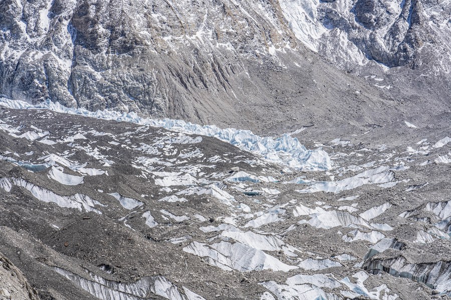 This photo taken on May 15, 2023 shows Central Rongbuk glacier at the foot of Mount Qomolangma, southwest China's Tibet Autonomous Region. (Xinhua/Sun Fei)