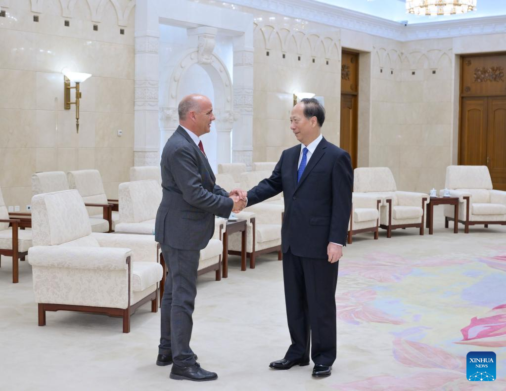 BEIJING, May 18 (Xinhua) -- Shi Taifeng, a senior official of the Communist Party of China (CPC), met with a delegation led by Paulo Raimundo, general secretary of the Portuguese Communist Party, in Beijing on Thursday.