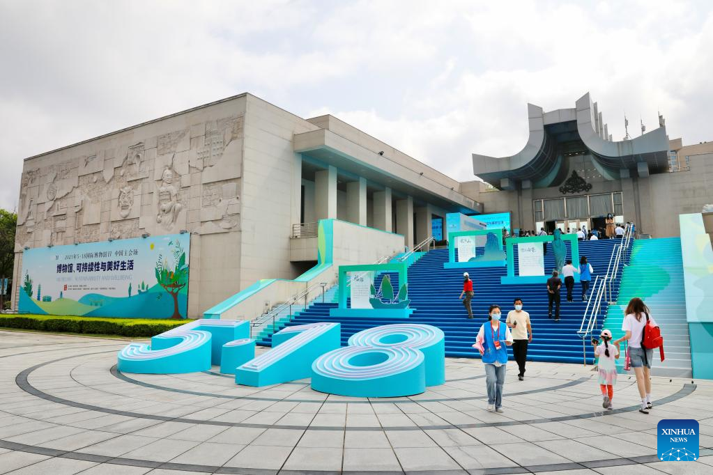 People visit a themed exhibition on the Maritime Silk Road at Fujian Museum in Fuzhou, southeast China's Fujian Province, May 18, 2023. Fujian Museum is China's main venue for this year's World Museum Day, which falls on May 18 with the theme of "museums, sustainability and better lives." A themed exhibition on the Maritime Silk Road also opened here on Thursday. (Xinhua/Li He)