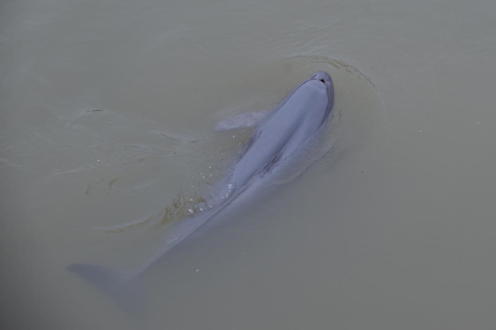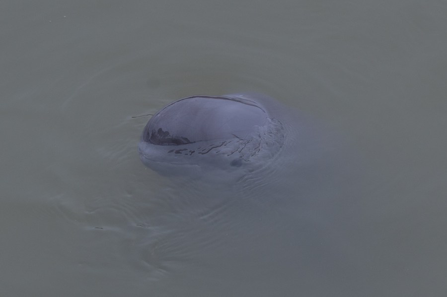 This photo taken on March 3, 2021 shows a Yangtze finless porpoise in the Tongling Freshwater Dolphins National Nature Reserve in Tongling, east China's Anhui Province. (Xinhua/Du Yu)