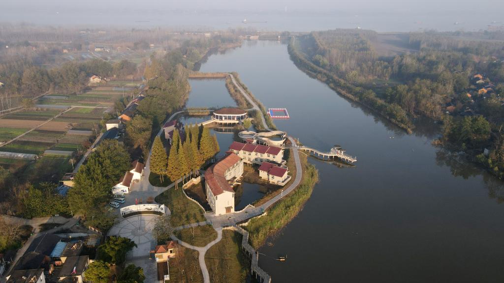 This aerial photo taken on Nov. 11, 2020 shows the Tongling Freshwater Dolphins National Nature Reserve in Tongling, east China's Anhui Province. (Xinhua/Zhou Mu)