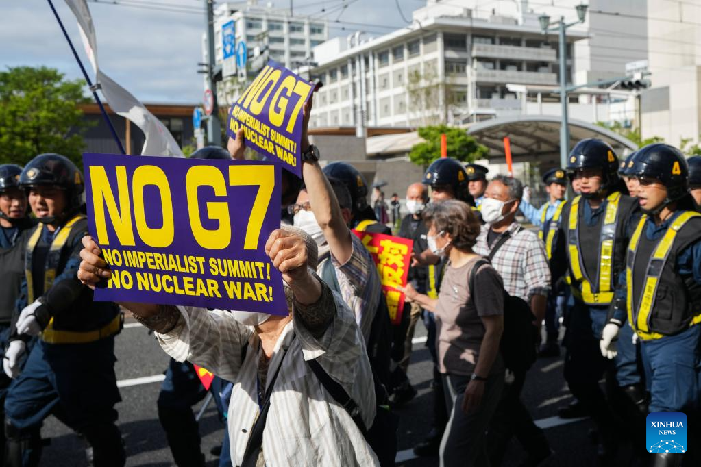 People rally in a protest against the Group of Seven (G7) summit in Hiroshima, Japan, May 20, 2023. (Xinhua/Zhang Xiaoyu)