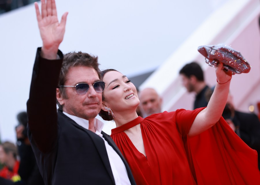Actress Gong Li (R) and her husband, French music composer Jean-Michel Jarre pose during a photocall at the 76th edition of the Cannes Film Festival in Cannes, southern France, on May 18, 2023. (Xinhua/Gao Jing)■