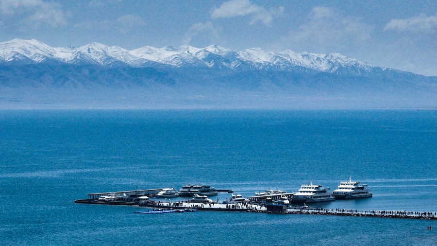 This aerial photo taken on May 18, 2023 shows a view of the Erlangjian scenic spot of Qinghai Lake in northwest China's Qinghai Province. Located in the northeastern part of the Qinghai-Tibet Plateau, the Qinghai Lake is key to maintaining the ecological balance in western China. It is also a natural barrier for controlling the eastward spread of desertification and ensuring the safety of agricultural areas in eastern China. In recent years, with various ecological projects carried out in the Qinghai Lake, the environment here has been greatly improved. (Xinhua/Zhang Long)