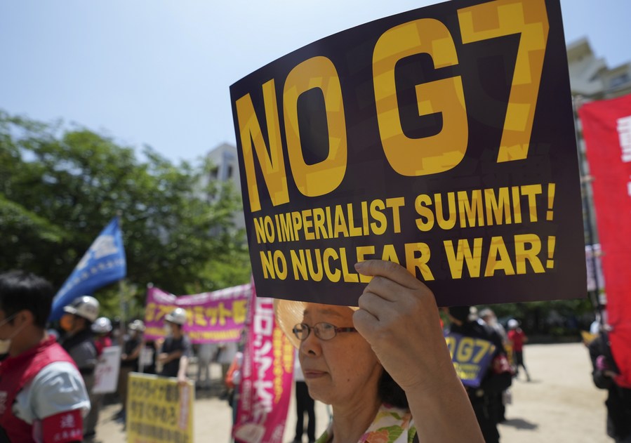 Following days of protests, hundreds of demonstrators from home and abroad on Sunday rallied against the G7 leaders' communique and other documents adopted by the summit in Hiroshima, a city once devasted by U.S. atomic bombing during World War II.