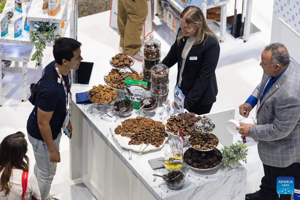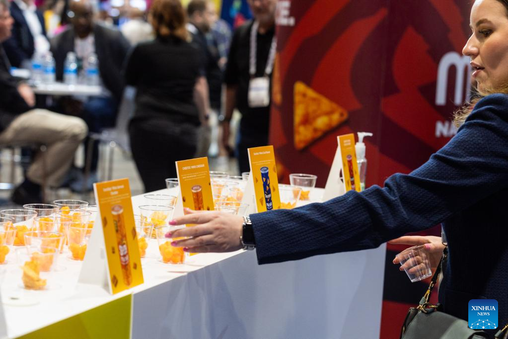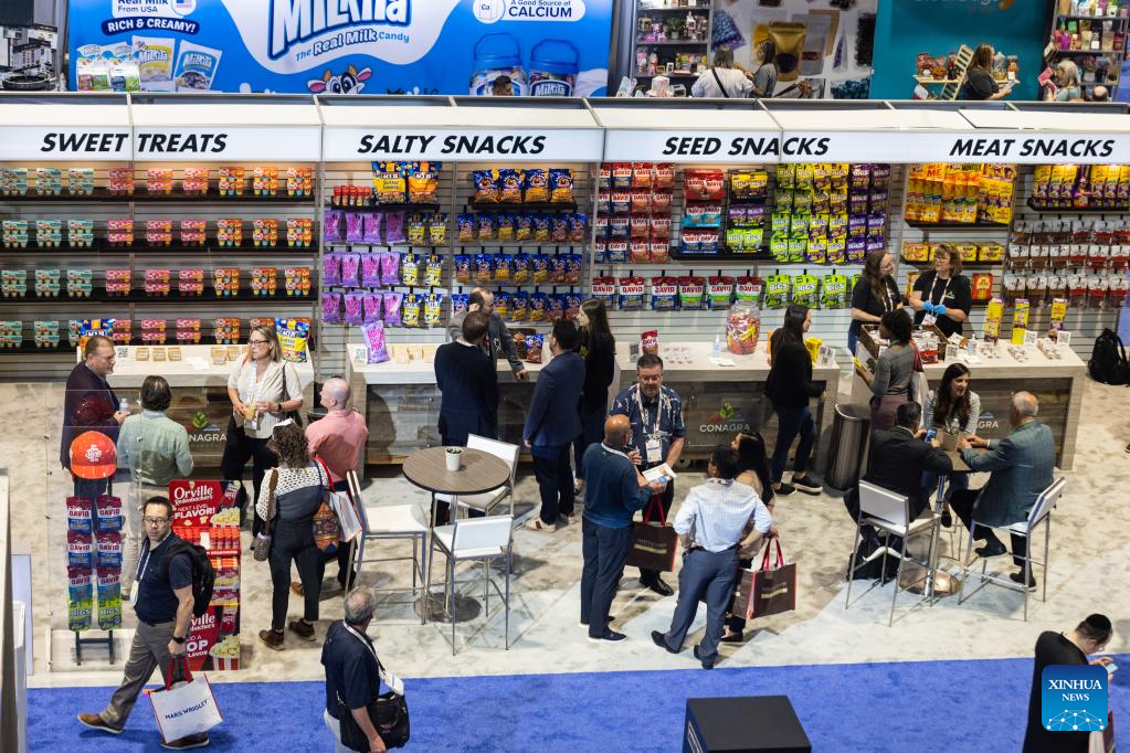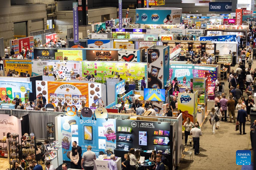 People visit the Sweets and Snacks Expo in Chicago, the United States, on May 23, 2023. The 2023 Sweets and Snacks Expo is held at McCormick Place in Chicago from May 22 to May 25. (Photo by Vincent D. Johnson/Xinhua)