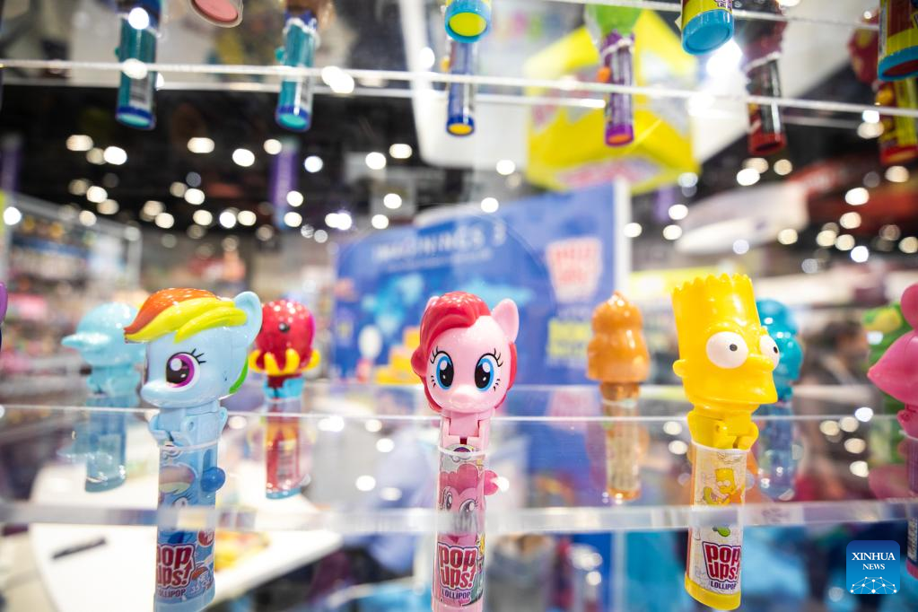 An assortment of popular characters made into Pop Ups lollipops are on display at the Sweets and Snacks Expo in Chicago, the United States, on May 23, 2023. The 2023 Sweets and Snacks Expo is held at McCormick Place in Chicago from May 22 to May 25. (Photo by Vincent D. Johnson/Xinhua)