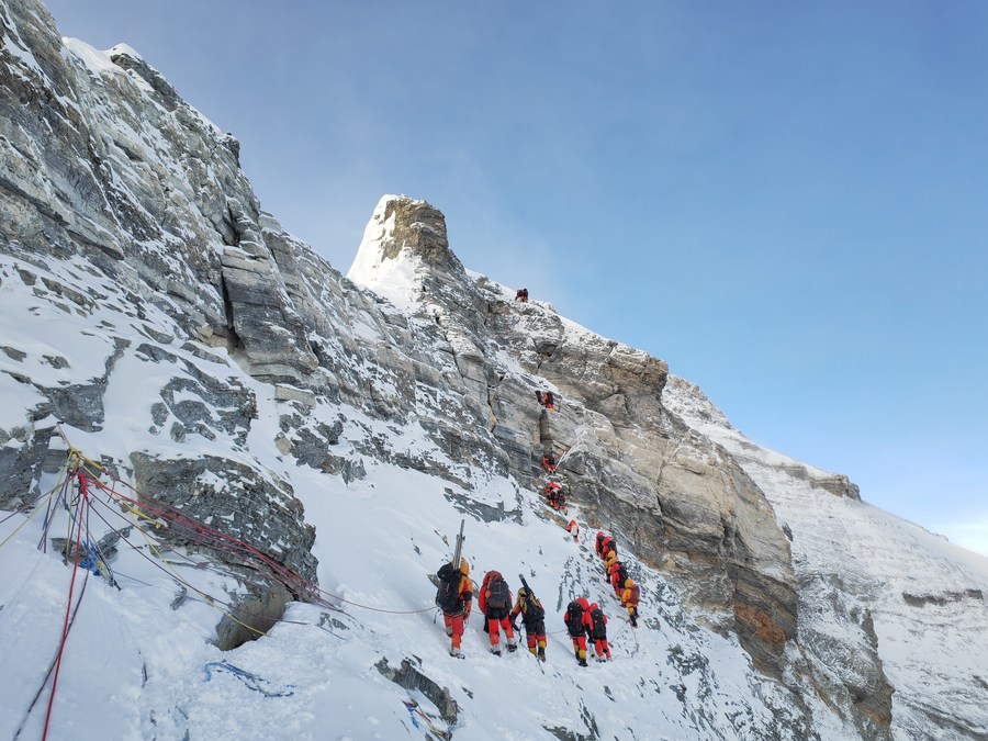 Members of a Chinese expedition team head for the summit of Mount Qomolangma on May 23, 2023. (Photo by Lhagba/Xinhua)