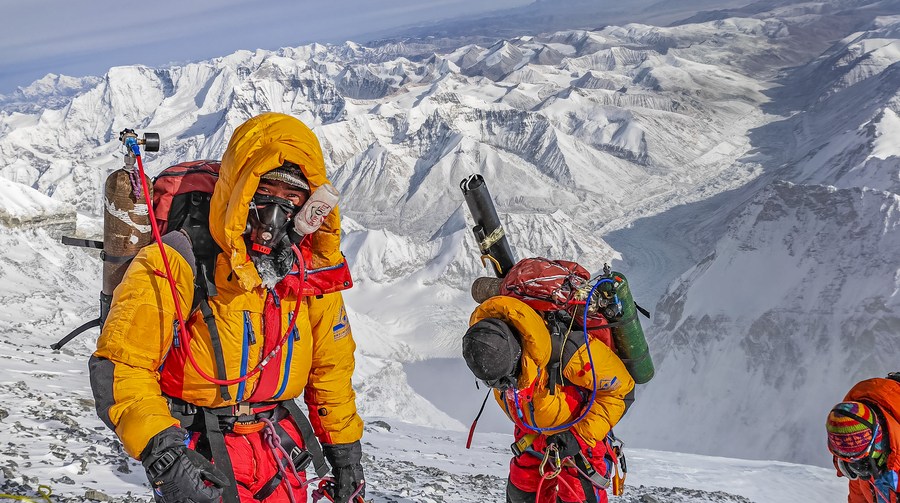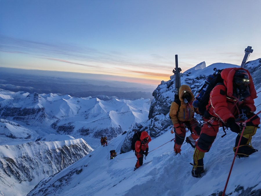 They then climbed to the summit of 8,848.86 meters to collect ice and snow samples, which will be used for the research of air pollutants, especially new pollutants.