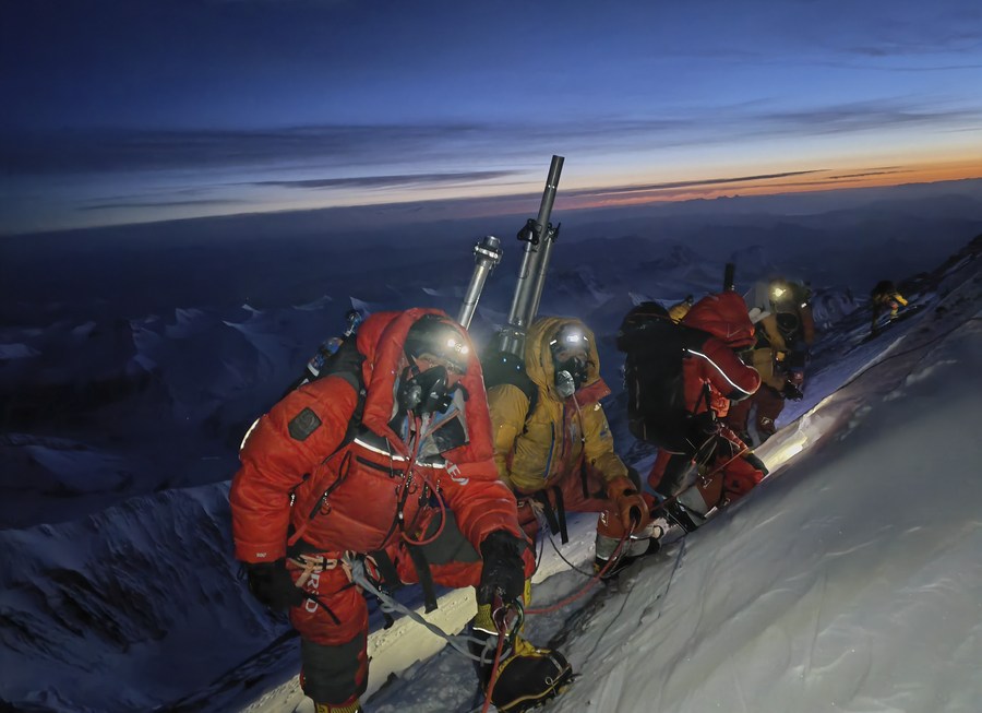 LHASA, May 24 (Xinhua) -- A Chinese expedition team reached the summit of Mount Qomolangma on Tuesday, as they look to carry out scientific research on the world's highest peak.