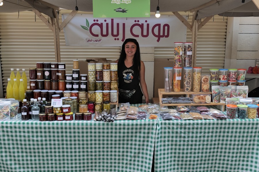 A woman stands at her booth displaying natural food products at a street fair in Beirut, Lebanon, on May 21, 2023. (Photo by Dana Halawi/Xinhua)