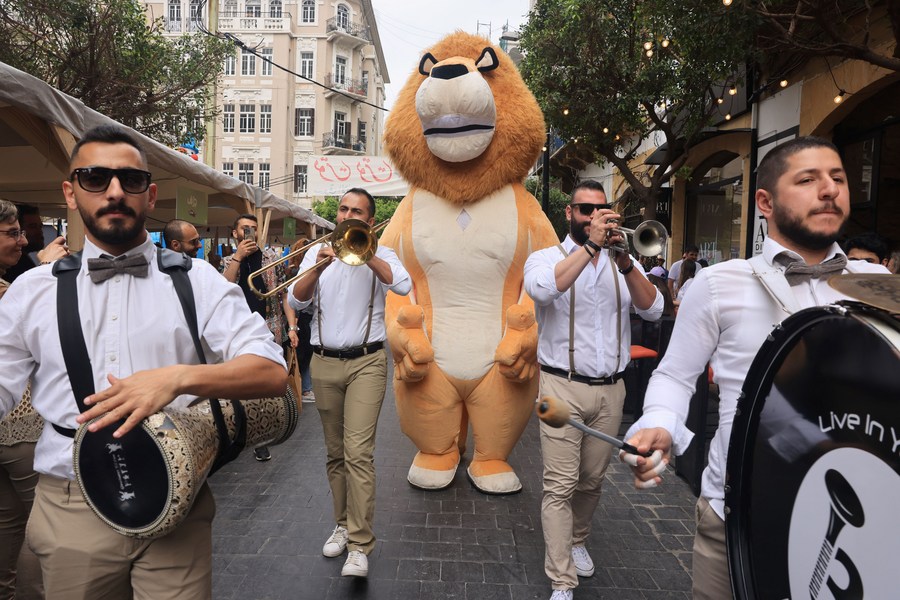 A band parades at a street fair in Beirut, Lebanon, on May 21, 2023. (Xinhua/Liu Zongya)