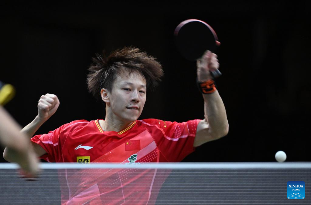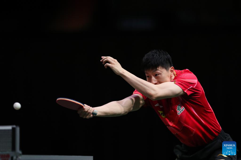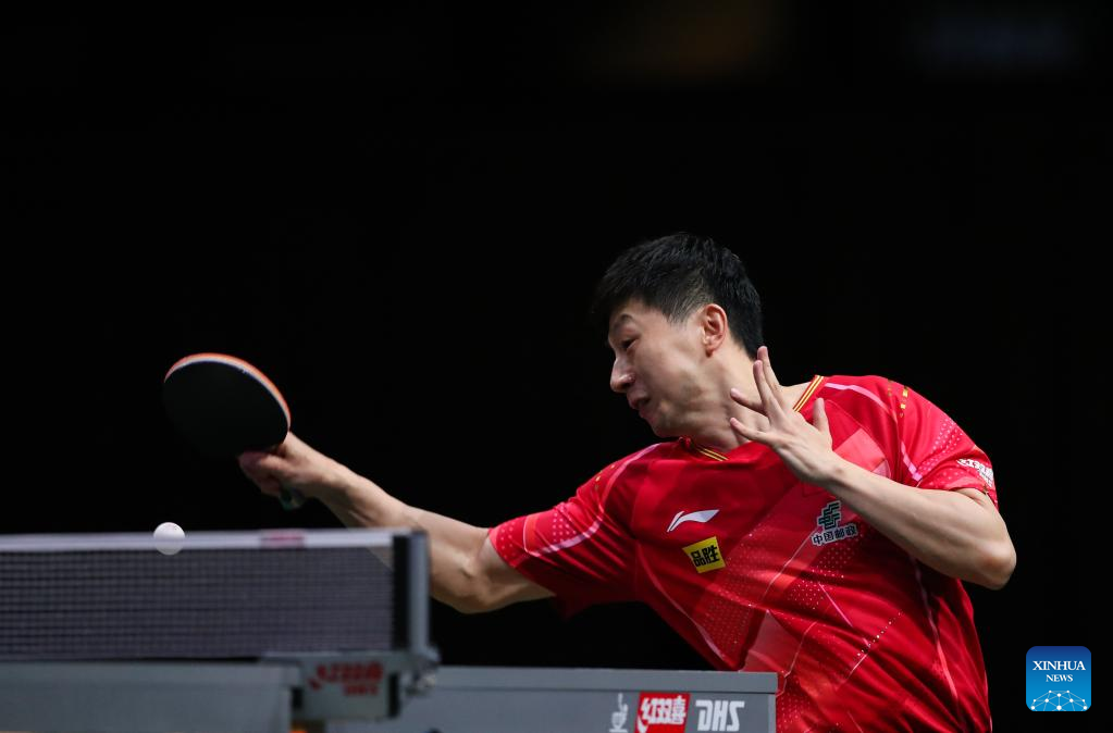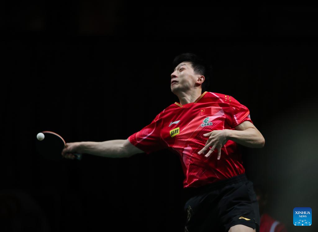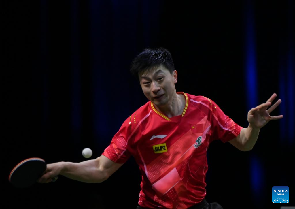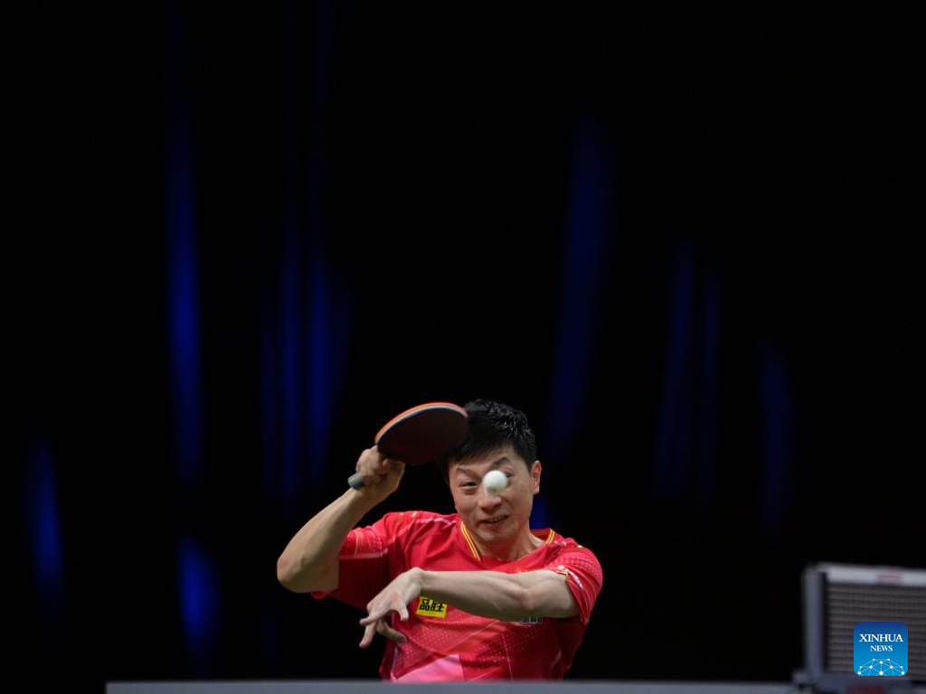 Ma Long of China hits a return during the men's singles round of 16 match against Lim Jonghoon of South Korea at 2023 ITTF Table Tennis World Championships Finals in Durban, South Africa, May 25, 2023. (Xinhua/Han Xu)