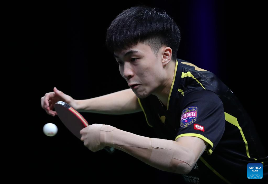 Lin Yun-Ju competes during the men's singles round of 16 match between Lin Gaoyuan of China and Lin Yun-Ju of Chinese Taipei at 2023 ITTF Table Tennis World Championships Finals in Durban, South Africa, May 25, 2023. (Xinhua/Wang Dongzhen)