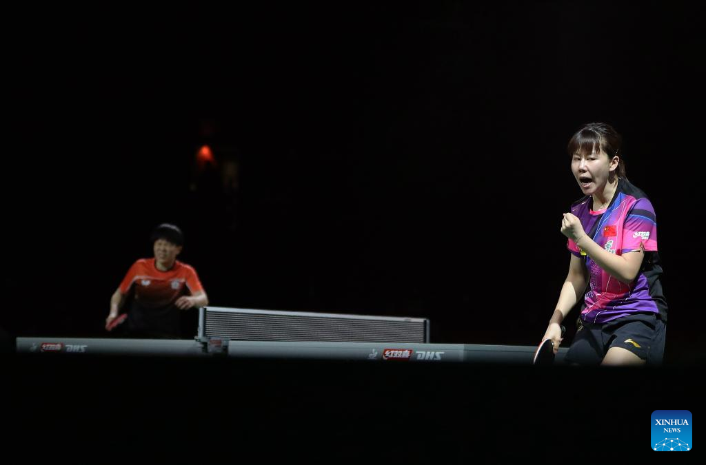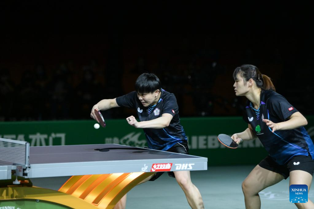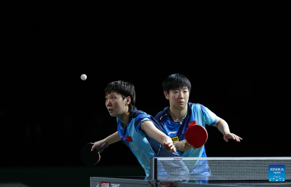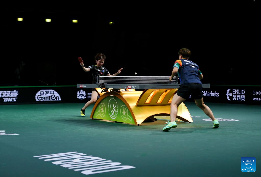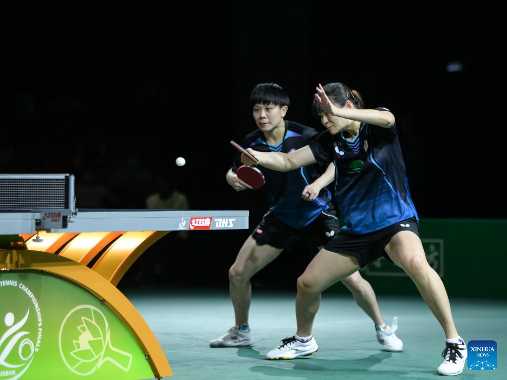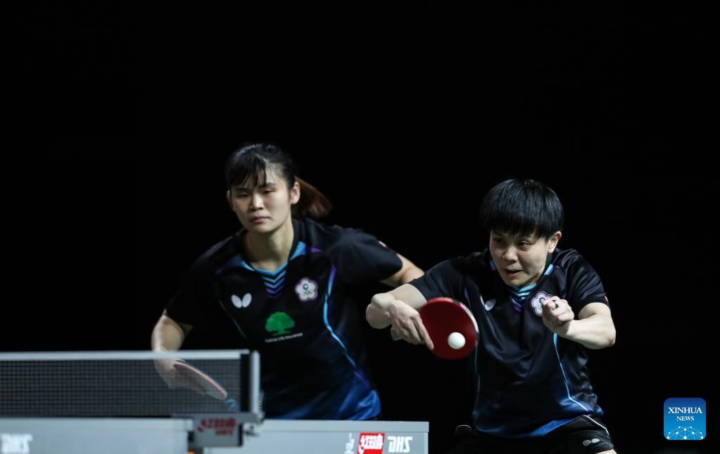Cheng I-Ching (L)/Li Yu-Jhun of Chinese Taipei compete against Wang Manyu/Sun Yingsha of China during the women's doubles quarterfinal match at 2023 ITTF Table Tennis World Championships Finals in Durban, South Africa, May 25, 2023. (Xinhua/Han Xu)