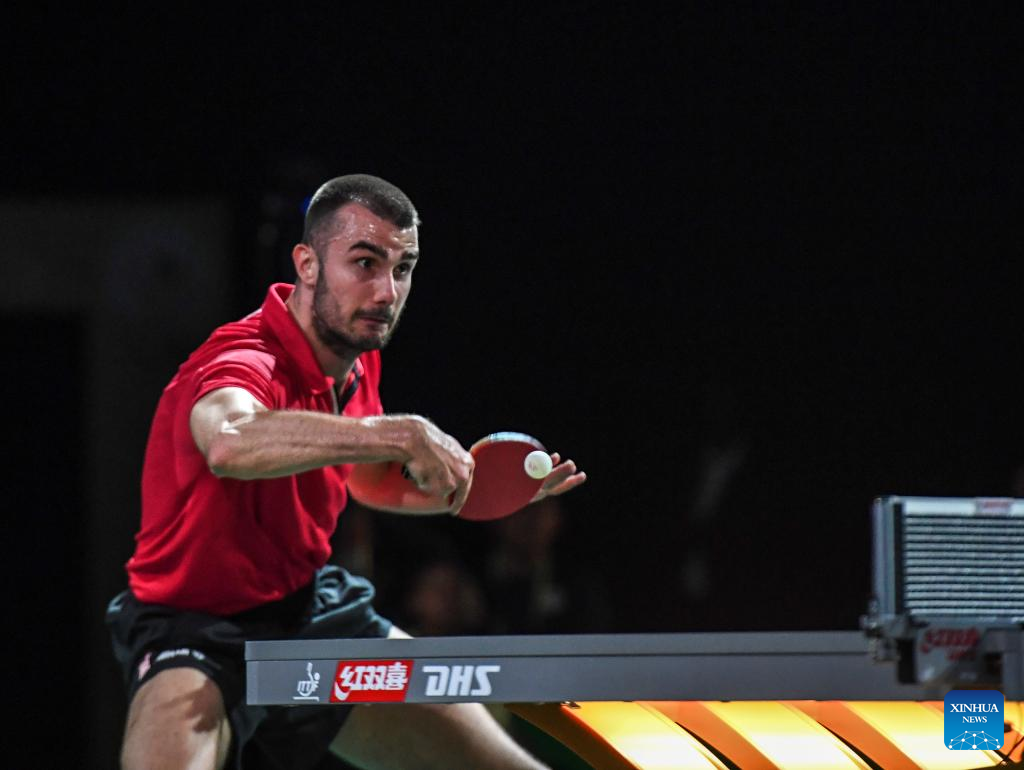 Tomislav Pucar of Croatia competes during the men's singles round of 16 match against Omar Assar of Egypt at 2023 ITTF Table Tennis World Championships Finals in Durban, South Africa, May 25, 2023. (Xinhua/Li Yahui)