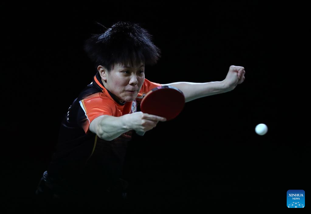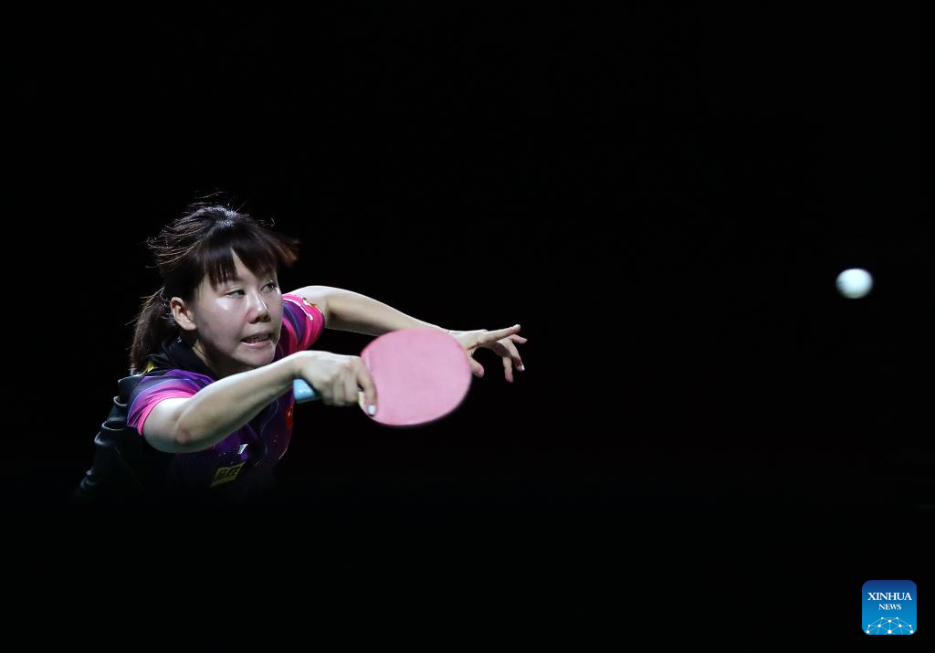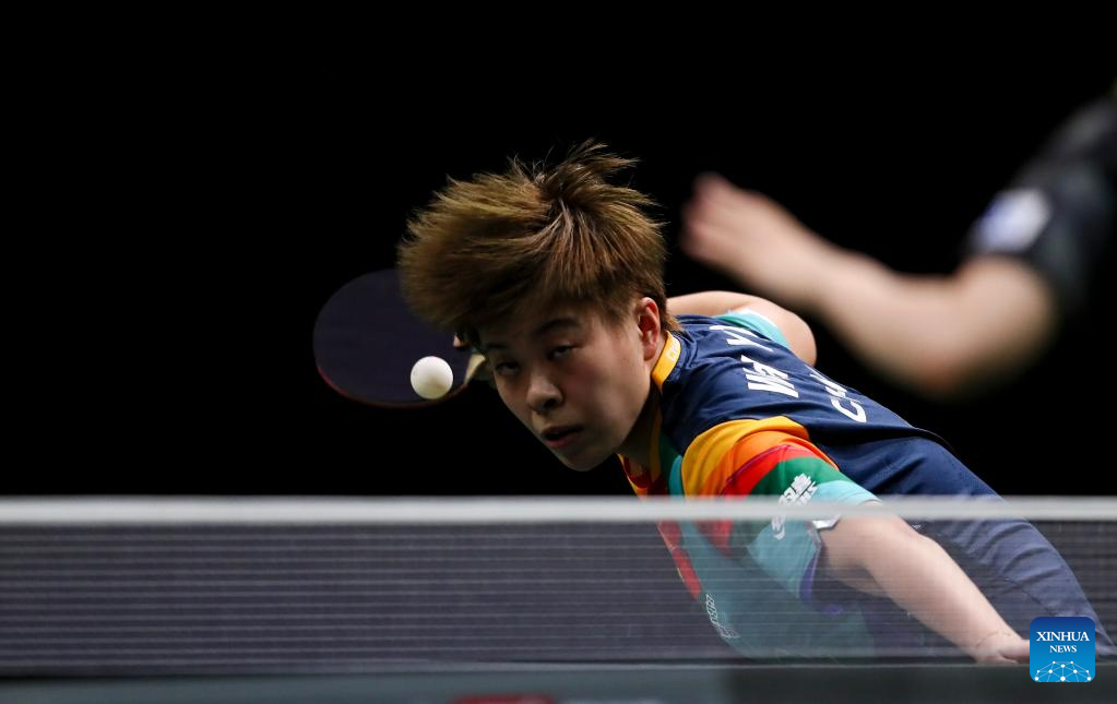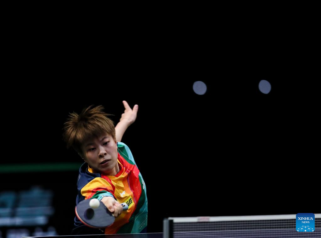 Cheng I-Ching competes during the women's singles round of 16 match between Chen Xingtong of China and Cheng I-Ching of Chinese Taipei at 2023 ITTF Table Tennis World Championships Finals in Durban, South Africa, May 25, 2023. (Xinhua/Wang Dongzhen)