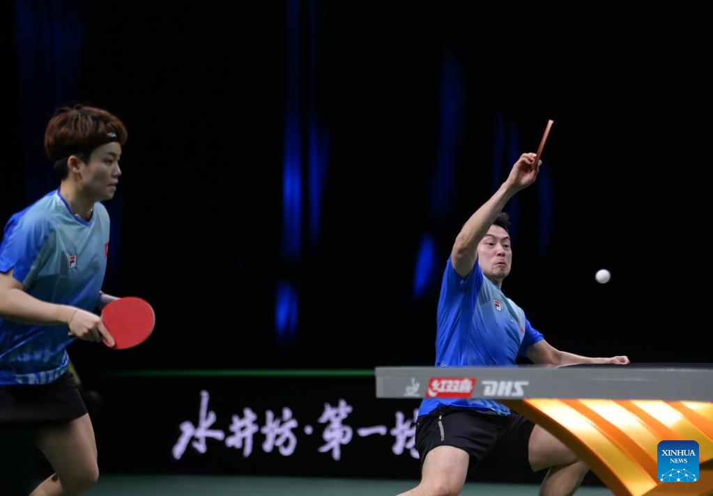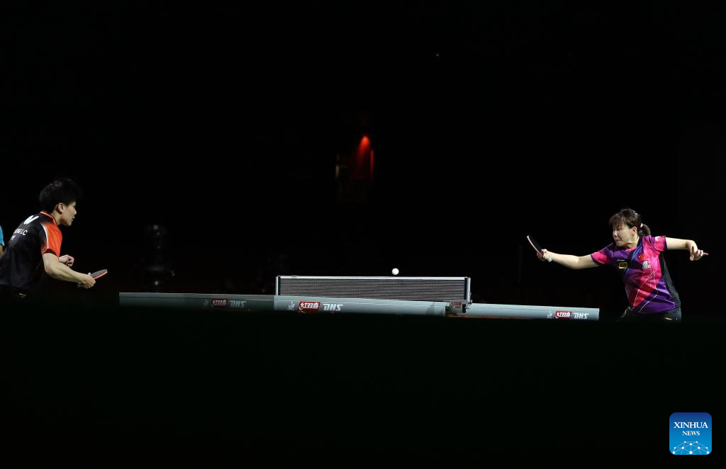 Lin Shidong/Kuai Man(L) of China compete during the mixed doubles semifinal match against Harimoto Tomokazu/Hayata Hina of Japan at 2023 ITTF Table Tennis World Championships Finals in Durban, South Africa, May 25, 2023. (Xinhua/Tao Xiyi)