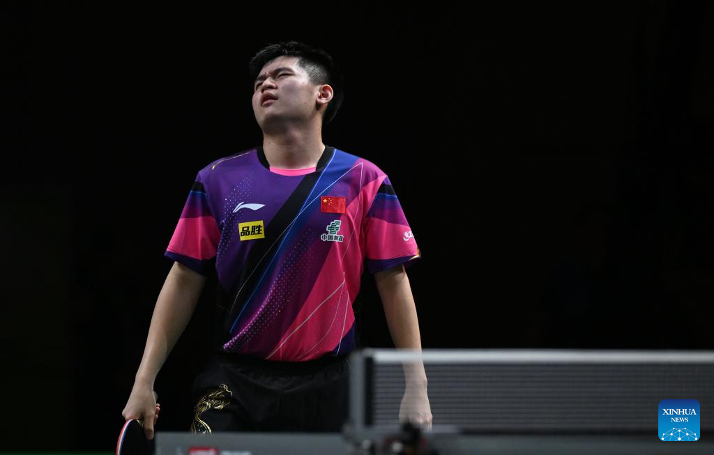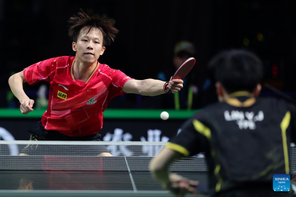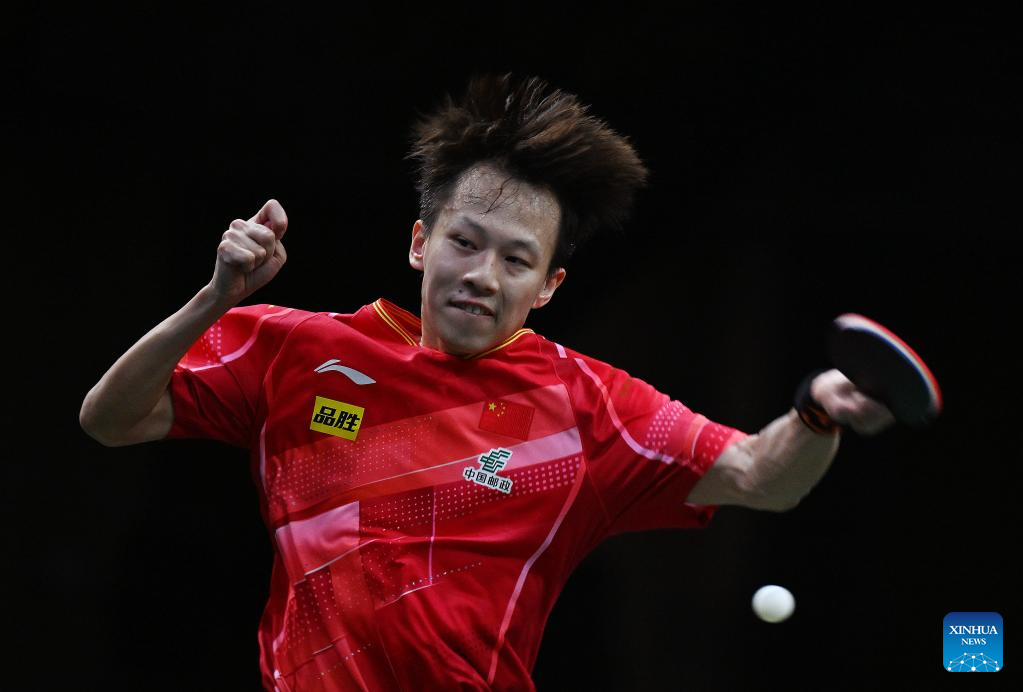 Lin Gaoyuan competes during the men's singles round of 16 match between Lin Gaoyuan of China and Lin Yun-Ju of Chinese Taipei at 2023 ITTF Table Tennis World Championships Finals in Durban, South Africa, May 25, 2023. (Xinhua/Tao Xiyi)
