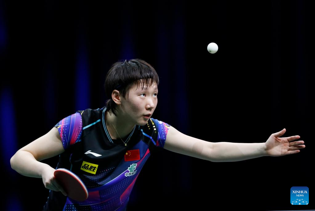Chen Xingtong competes during the women's singles round of 16 match between Chen Xingtong of China and Cheng I-Ching of Chinese Taipei at 2023 ITTF Table Tennis World Championships Finals in Durban, South Africa, May 25, 2023. (Xinhua/Wang Dongzhen)