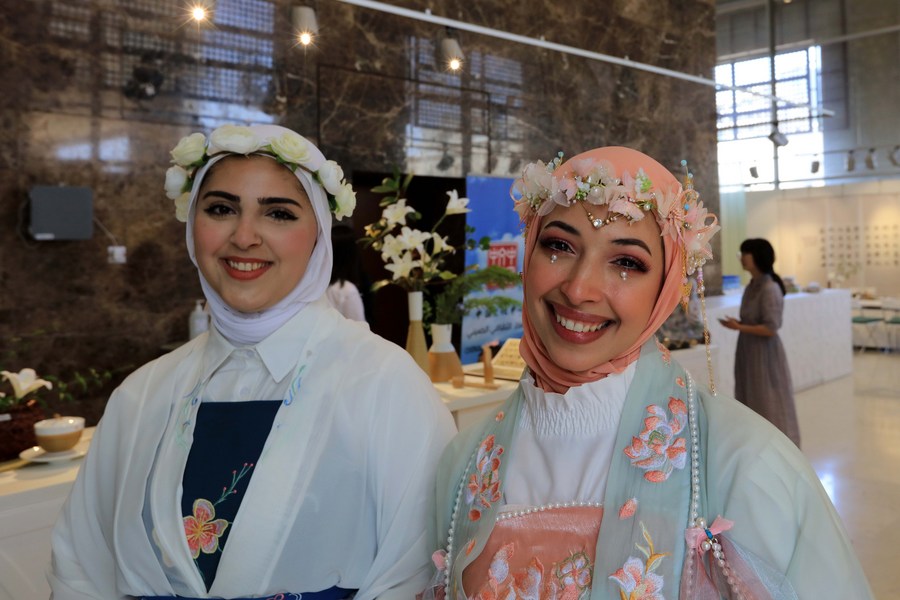 Jordanian students wearing Hanfu are seen during the salon at an art gallery in Amman, Jordan, on May 24, 2023. (Photo by Mohammad Abu Ghosh/Xinhua) ■